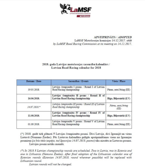 2018. gada Latvijas motošosejas sacensību kalendārs