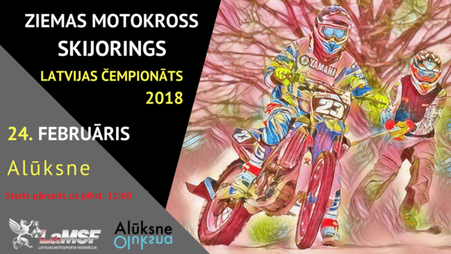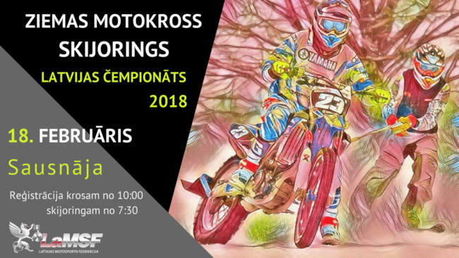 Latvijas čempionāta skijoringā un ziemas motokrosā ceturtais posms notiks svētdien, 18.februārī Ērgļu novadā, Sausnājā. Sacensību nolikums ŠEIT Aktualizētās dienas kārtība ŠEIT. 2018.gada nolikumi un noteikumi paliek nemainīgi, tādēļ aicinām visus sportistus kārtot licences LaMSF licenču sistēmā www.licences.lv. 2018.gada nolikums pieejams ŠEIT, licenču maksas ŠEIT. Vienlaikus publicējam plānotās Latvijas čempionāta sacensību vietas 2018.gada sezonai februāra/ marta mēnesī atkarībā no laikapstākļiem:…