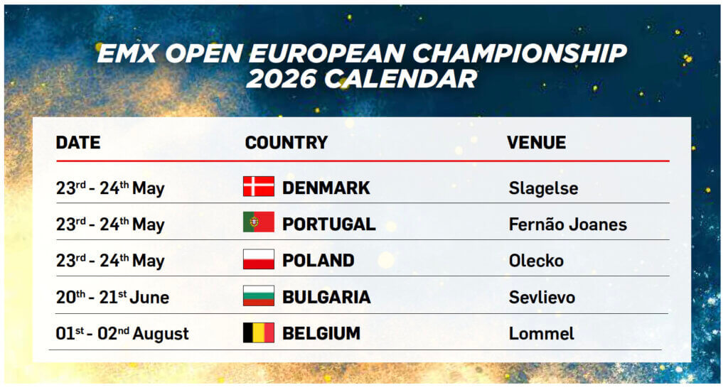 “FIM Europe” oficiāli paziņojusi par jauna sacensību seriāla – “EMX Open” Eiropas čempionāta – izveidi, kura debija paredzēta 2026. gada sacīkšu sezonā. Jaunā klase radīta ar mērķi vēl vairāk stiprināt un paplašināt Eiropas motokrosa platformu, piedāvājot kvalitatīvas un jēgpilnas sacensību iespējas gan jaunajiem talantiem, gan pieredzējušiem braucējiem visā kontinentā.