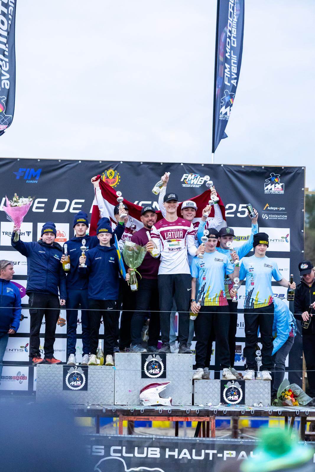 “Esmu ļoti, ļoti priecīgs – te esmu otro reizi, vienu gadu biju izlasē, bet īsi pirms tam salauzu roku un biju tikai skatītājs. Šodien ir īpašs prieks kāpt uz goda pjedestāla,” – Artūrs Vinters, MX85 klases sportists.