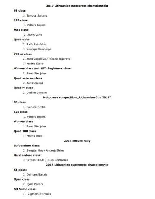 Lithuanian Motocross, Enduro, Cross Country, Enduro Sprint, Supermoto, Road Racing, Enduro