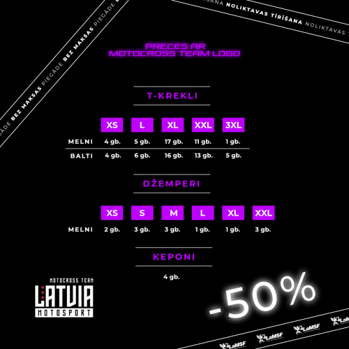 Pēdējo modeļu izpārdošana! Noliktavā palikušajiem modeļiem 50 % atlaide!