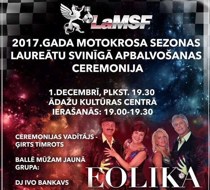 DetailsThe Lithuanian motorcycle sport federation’s Awards Ceremony 2017 will be held on December 2, at 15:30 in Leisure and Entertainment Center “Renginių oazė” (Baltų pr. 16, Kaunas) (http://renginiuoaze.lt/). We invite all the laureates and motorsport members to this event. During the event the podium riders will be awarded in Championships and Cups of Lithuanian Motocross,…