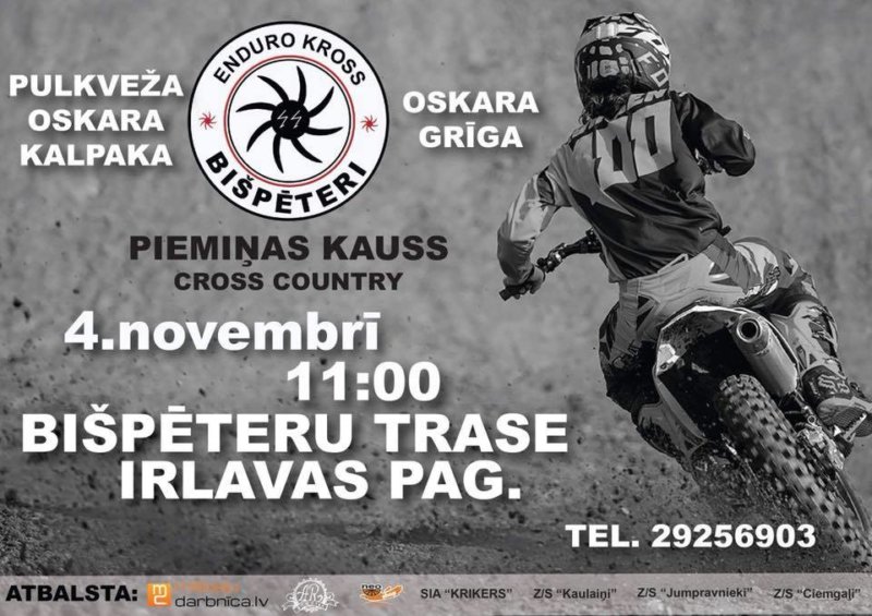 4.novembrī Irlavas pagasta trasē „Bišpēteri” (Tukuma novads), norisināsies Pulkveža Oskara Kalpaka un Oskara Grīga piemiņas kauss Cross Country.