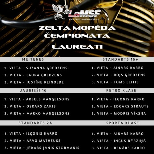 Zelta mopēda čempionāta laureātu saraksts un noslēguma pasākuma norise